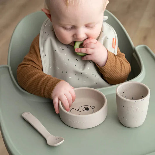 Platos de silicona, bowls antideslizantes y cucharas ergonómicas para bebés. Seguros, prácticos y diseñados para acompañar las primeras comidas.