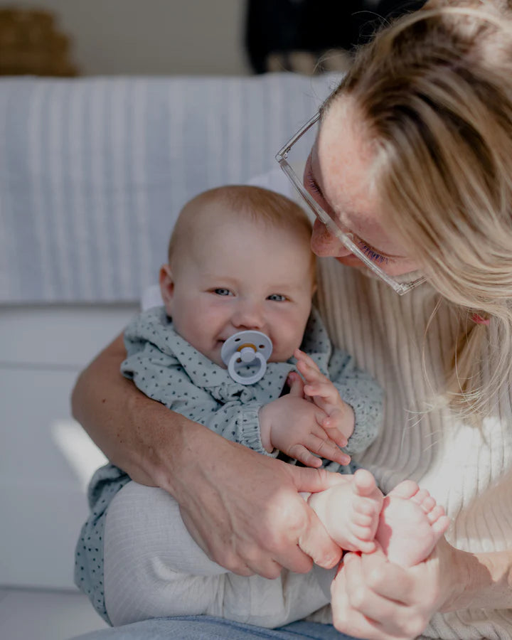 Diseñado y fabricado en Dinamarca desde hace más de 45 años por BIBS, este clásico chupete representa un diseño atemporal y seguro para tu bebé.