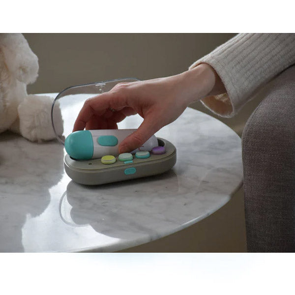 El cortaúñas eléctrico Melii pule suavemente las uñas, eliminando los bordes afilados y evitando cualquier molestia. Su motor silencioso y su suave movimiento giratorio hacen que el corte de uñas sea fácil y agradable. Este versátil dispositivo incluye cinco cabezales de lima intercambiables, lo que permite que la recortadora crezca con su hijo desde recién nacidos hasta niños pequeños y más allá. El interruptor de 2 velocidades le permite ajustar fácilmente la velocidad de pulido para adaptarse a sus necesidades cambiantes de cuidado de las uñas. Con el cortaúñas eléctrico Melii, los desgarros y las luchas durante las sesiones de corte de uñas son cosa del pasado.
