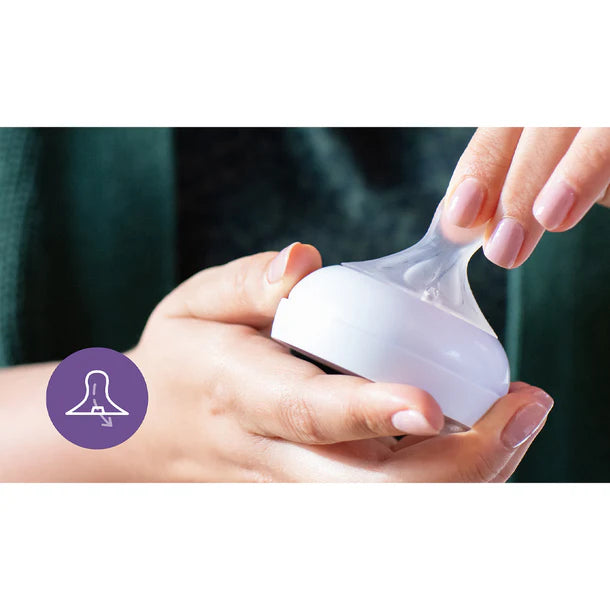 La Mamadera Natural 3.0 de Avent cuenta con una tetina de sujeción natural, similar al pecho materno, permite un ajuste cómodo para tu bebé. Ideal para combinar lactancia y mamadera.