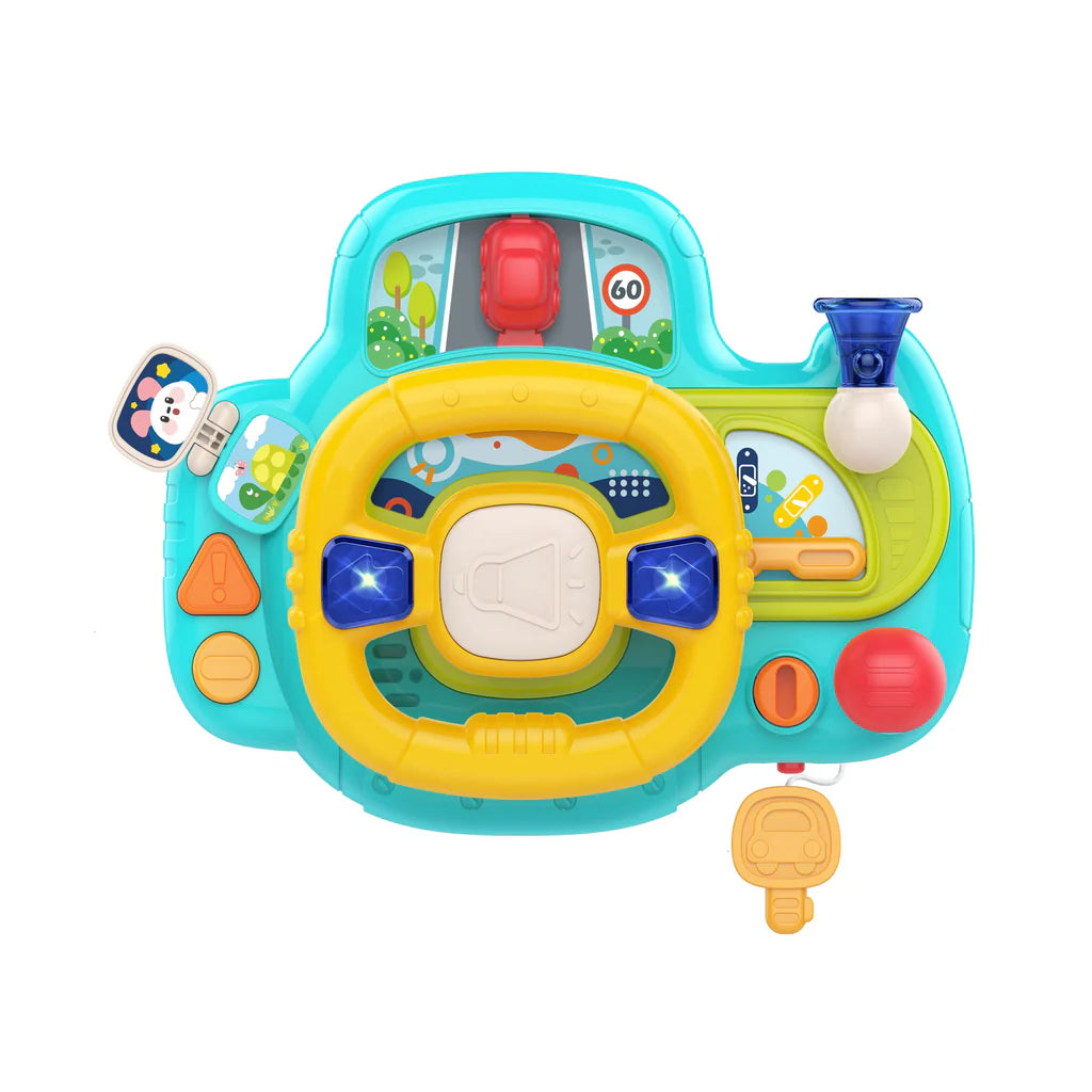 Este es un juguete versátil incluye un volante que se puede girar de forma flexible y ajustable, mientras que los cuernos y otros efectos de sonido permiten experimentar la alegría de conducir un vehículo temprano.