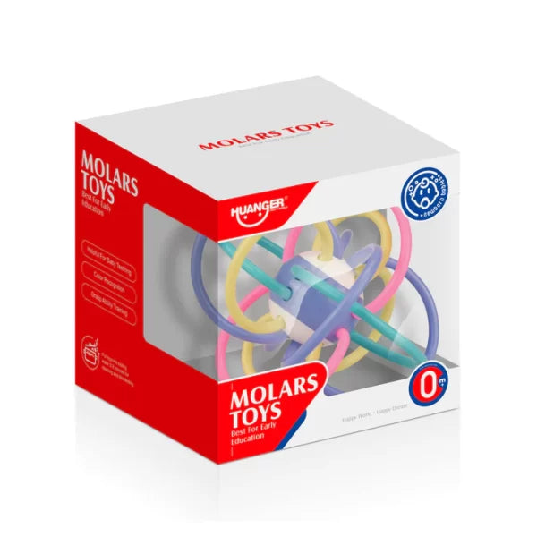 Sonajero y mordedor molar para entretener y cuidar a los infantes al momento de salir los primeros dientes. Su laberinto de tubos suaves, continuos y colores deslumbrantes captura y retiene instantáneamente la atención de los pequeños.