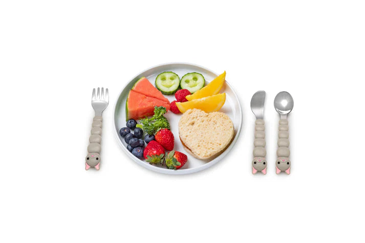 ¡Este lindo set de cubiertos hacen que la alimentación sea divertida!